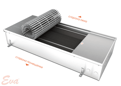 Конвектор встроенный в пол водяной от производителя Eva - это отопительные приборы, в которых установлен медно-алюминиевый теплообменник, тепло от которого передаётся в отапливаемое помещение путём естественной конвекции.